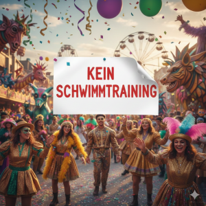 Am Rosenmontag, den 16.02.2026, findet kein Schwimmtraining statt. Wir tauschen die Schwimmbrille gegen Konfetti und gönnen unseren Trainern und Aktiven eine kurze Verschnaufpause im Fastelovend.